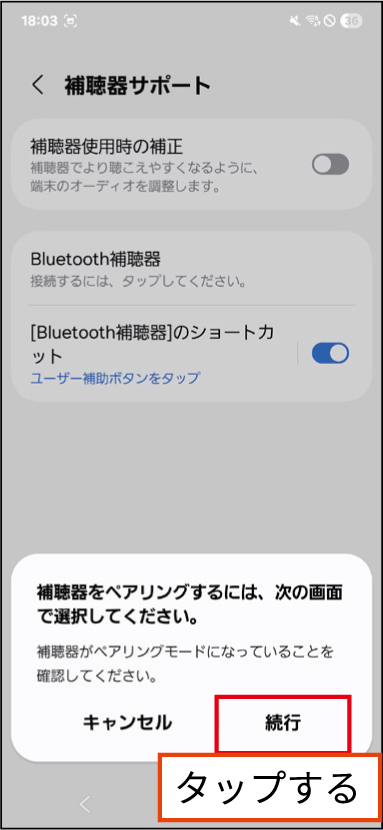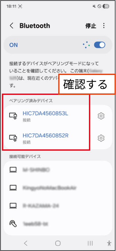 10Bluetooth画面で、補聴器がペアリングされていることを確認します